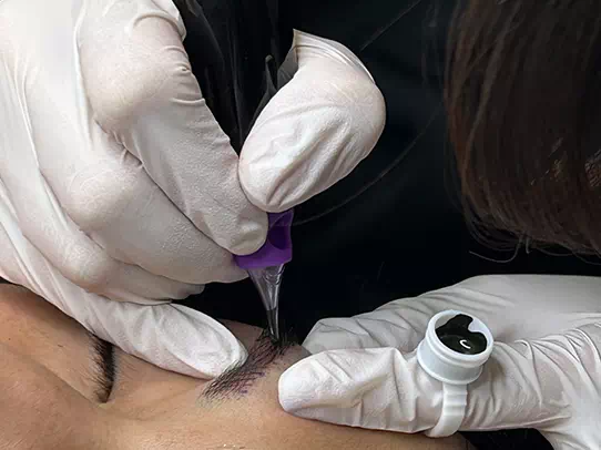 パウダーコースは専用のマシンで眉に点状に色素を入れてパウダーメイクをしたようなアートメイクを入れる技法を学ぶコースです。
